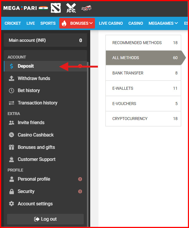 It's easy to deposit money into your Megapari Philippines account. To fund your account and begin taking advantage of Megapari's casino games and betting chances, just follow these steps: